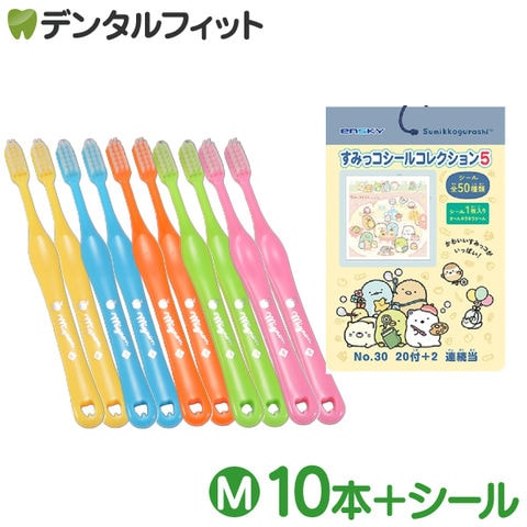 【メール便で送料無料】子供用 歯ブラシ「mignon(ミニョン)」Mふつう10本とすみっコぐらし シールコレクション当て 第5弾 1束(20枚+2枚)のセット(メール便2点まで) set cp10