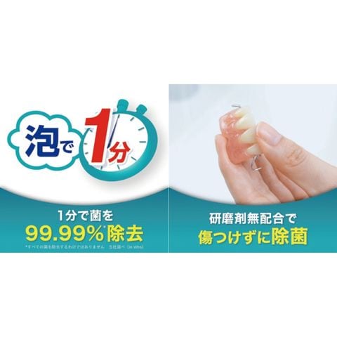 ミクロ泡の独自の洗浄成分が直接働き、隅々まで広がり部分入れ歯・マウスピースの汚れを浮かします。