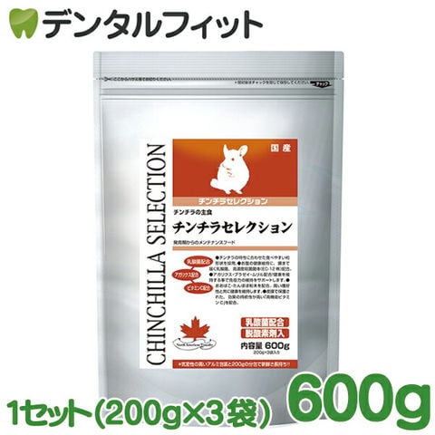 チンチラセレクション 600g 1セット(200g×3袋) チンチラの餌 国産 日本製 粒形状を採用 高機能ビタミンC配合 チンチラ専用高品質総合栄養フード プレミアムチンチラフード