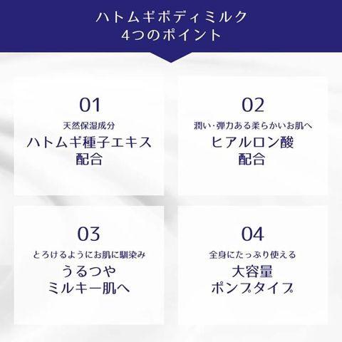 ●天然保湿成分ハトムギエキス配合のボディミルクです。