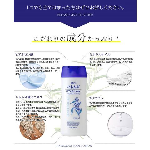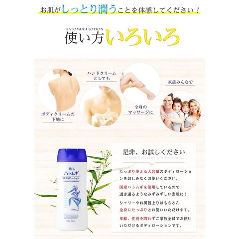 ●天然保湿成分 ハトムギエキスを配合した、ボディローションです。