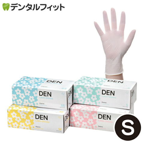 Den ラテックスグローブ ポリマー加工 パウダーフリー Sサイズ 1箱100枚入り ※パッケージが変更になる場合があります。