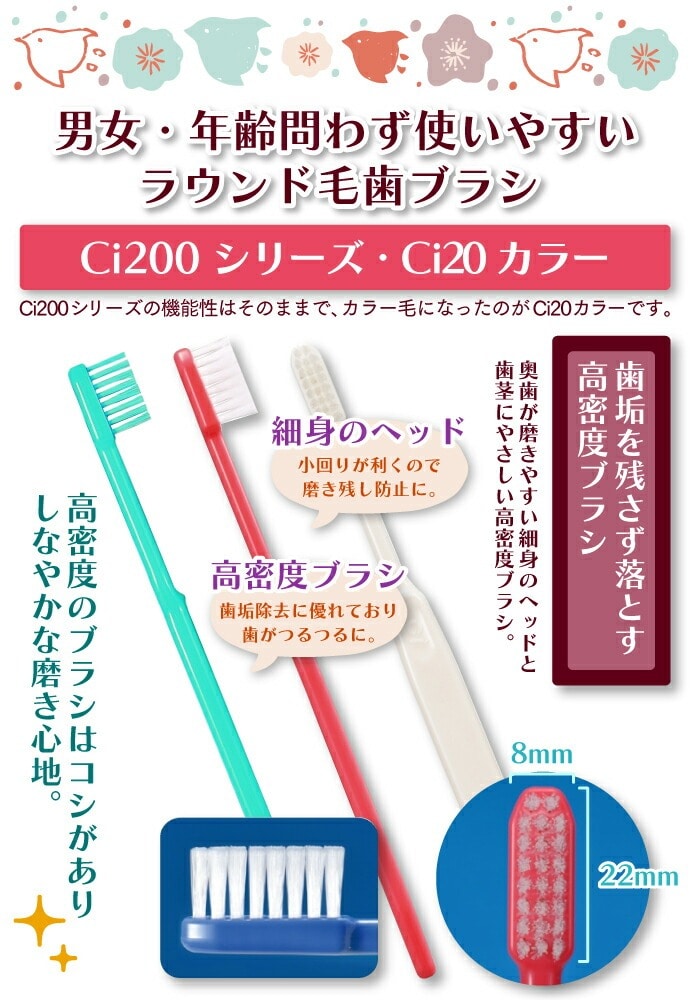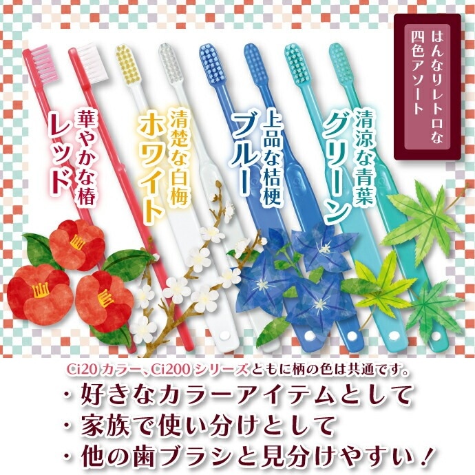 歯科専売品の歯ブラシ出荷大手の『Ciメディカル歯ブラシ』の中でも、20年以上も多くの歯科医師から愛され、指導用歯ブラシとしての支持が最も高い『Ci200シリーズ』です。
