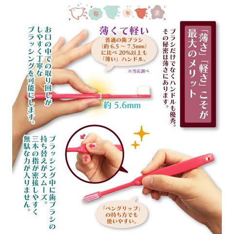ヘッドは細く小回りが利くので、口腔内のすみずみまでブラシが届きます。