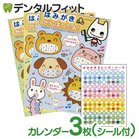 はみがきカレンダー3枚(3ケ月90日分)、シール1シート(108枚)
