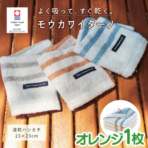 【メール便で送料無料】今治タオル ハンカチ モウカワイターノ オレンジ 1枚 速乾タオル 部屋干し 吸水 梅雨 まとめ買い 日本製 ハートウエル ハンドタオル ミニタオル (メール便3点まで)