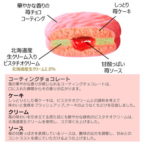 日ごろのご褒美として、ちょっと贅沢な「チョコパイプレミアム<苺とピスタチオ>」を、ぜひお召し上がりください。