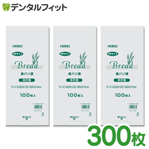 HEIKO パン袋 3袋セット 300枚(100枚入×3袋) 食パン半斤用 (12.5×31×マチ6cm、厚さ0.025mm)【ヘイコー シモジマ 規格袋 透明 食品OK PPパン袋 小分け おむつ オムツ 生ごみ 防臭 防湿 ポリ袋】