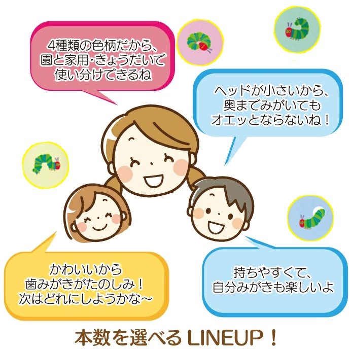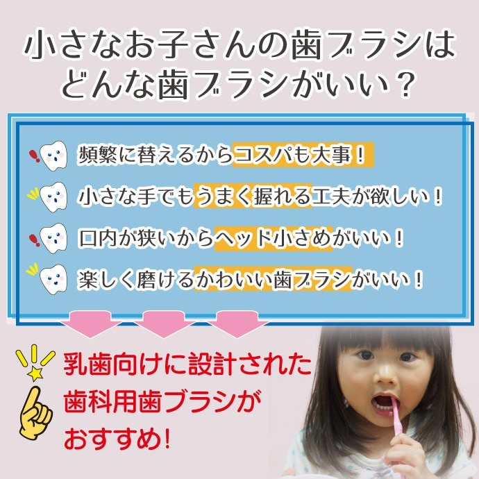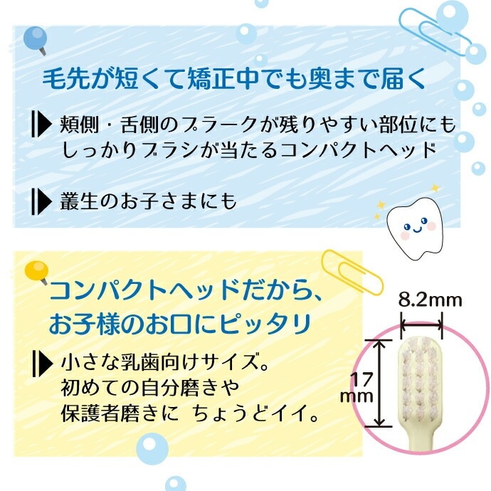 小さな乳歯向けサイズ。はじめての自分磨きや保護者磨きに。