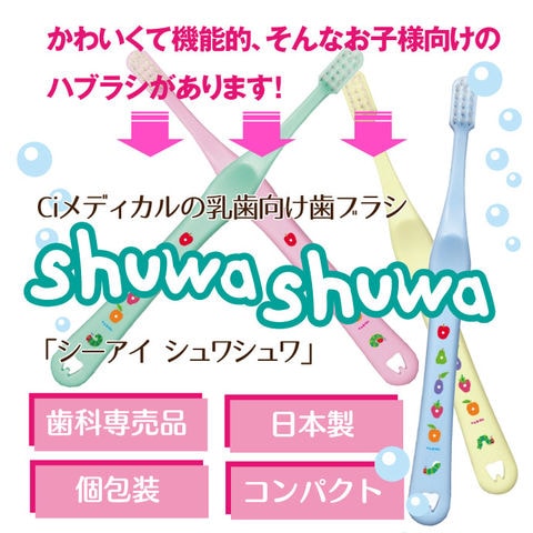 【メール便で送料無料】Ci shuwa shuwa (シュワシュワ) はらぺこあおむし柄 Mふつう 8本セット【子供用 歯ブラシ 乳幼児 乳歯年向け コンパクトヘッド 】(メール便4点まで) set