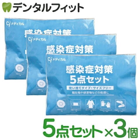 感染症対策5点セット 3個【Ciメディカル 不織布キャップ 3層式不織布マスク ポリエチレンガウン プラスチックグローブ 不織布シューズカバー 使い捨て 防護服 】