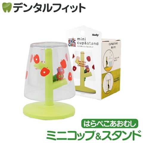 世界中で愛されるエリックカールの代表作絵本「はらぺこあおむし」のうがいコップ&スタンドと90mlのミニサイズコップのセット。
