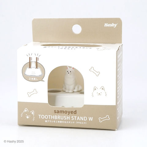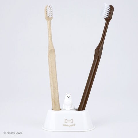 サモエドのフィギュアがちょこんと乗った、歯ブラシを2本立てられる「歯ブラシスタンドW(ダブル)」!