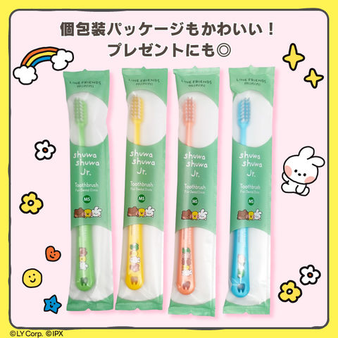 Ci shuwa shuwa Jr. LINE FRIENDS minini(ライン フレンズ ミニニ) 1本 (MSやややわらかめ) 【子供用 Ciメディカル 歯ブラシ シュワシュワ ジュニア コンパクトヘッド 日本製 全4色(色、柄は選べません)】