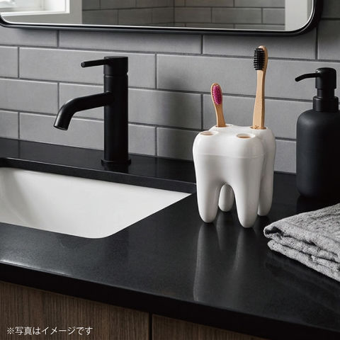 歯の形をしたユニークなデザインで、洗面スペースのアクセントに。