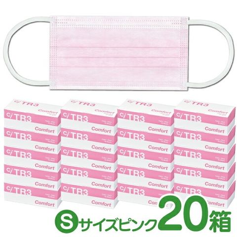 【送料無料】TR3コンフォートマスク ピンク Sサイズ 約94×160mm 20箱セット(50枚入/箱) ASTMレベル3相当 幅広ゴム