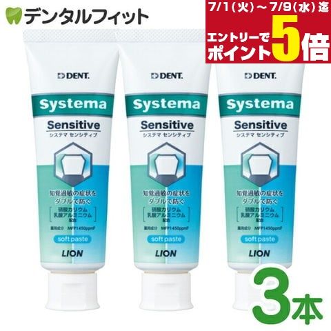 知覚過敏 歯磨き粉 歯磨き剤 DENT システマ センシティブ ソフトペースト 3本セット フッ素1450ppm (1本/85g) ライオン systema set