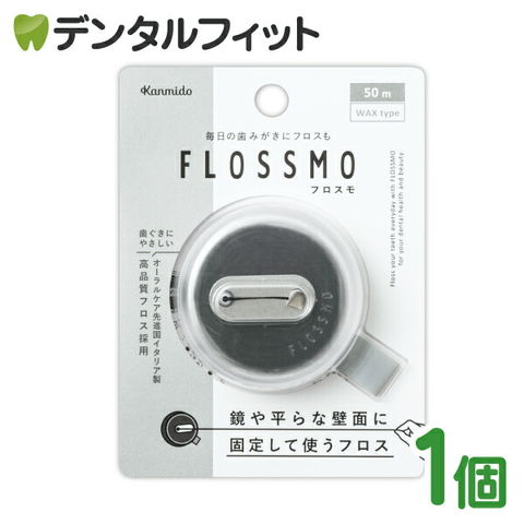 FLOSSMO (フロスモ) ブラック 1個(50m) / 置き場所を固定できる!鏡や平らな壁面に貼り付けられる! / Kanmido カンミ堂 デンタルフロス フロス ワックス 糸巻き