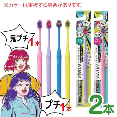 【メール便で送料無料】歯ブラシ エビス プログリップ NUMA プチ1本+鬼プチ1本 2種セット PROGRIP コンパクトヘッド 極細毛 密集植毛 沼るハブラシ ぎゅっふぁ ヘッドが小さい 日本製(メール便6点迄)