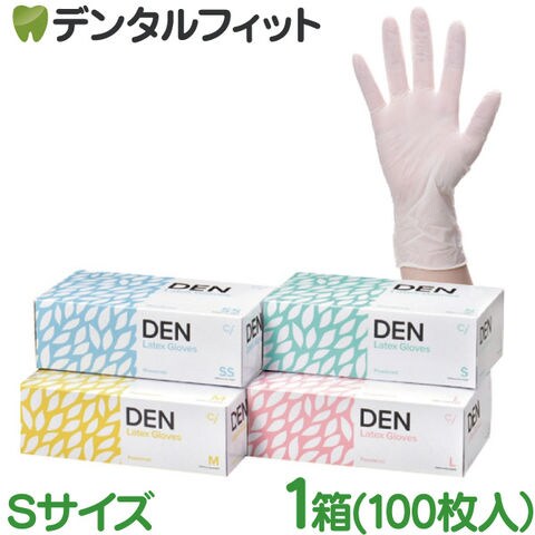 DEN ラテックスグローブ パウダー付き(表面スムースタイプ) Sサイズ 1箱(約100枚)