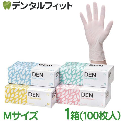 DEN ラテックスグローブ パウダー付き(表面スムースタイプ) Mサイズ 1箱(約100枚)