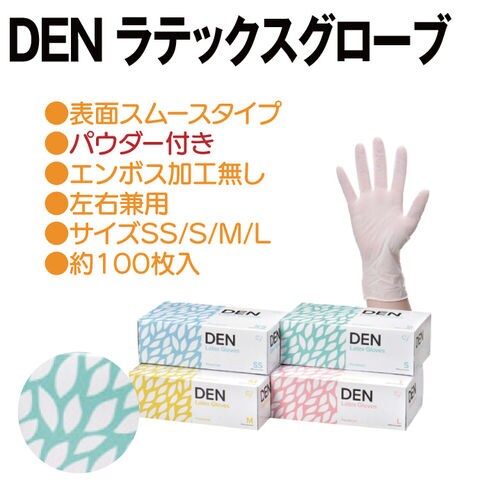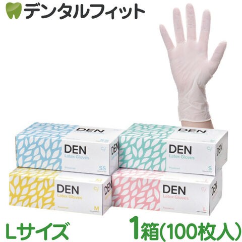 DEN ラテックスグローブ パウダー付き(表面スムースタイプ) Lサイズ 1箱(約100枚)