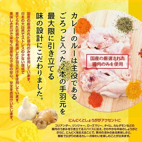 ・カレールーは主役であるごろっと入った2本の手羽肉を引き立てる味の設計にこだわりました。