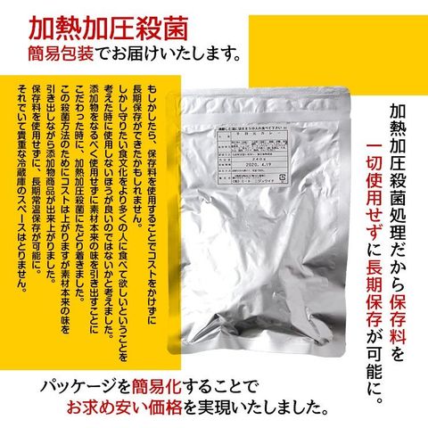 ・保存料無添加で、レトルト加工、加熱加圧殺菌を行い、レトルト食品として常温保存、常温保管が可能で長期保存ができるレトルトご飯とあわせておいしい惣菜です。