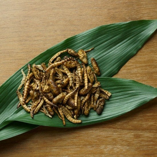 原材料:ミルワーム、スーパーワーム、サゴワーム、カイコ(シルクワーム)、塩