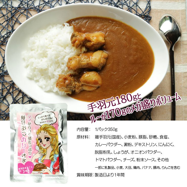 グルメ食品 産直 仕送り専用カレー 仕送り食品 毎日おつカレーさま 手羽元まるごと3本入りの紹介