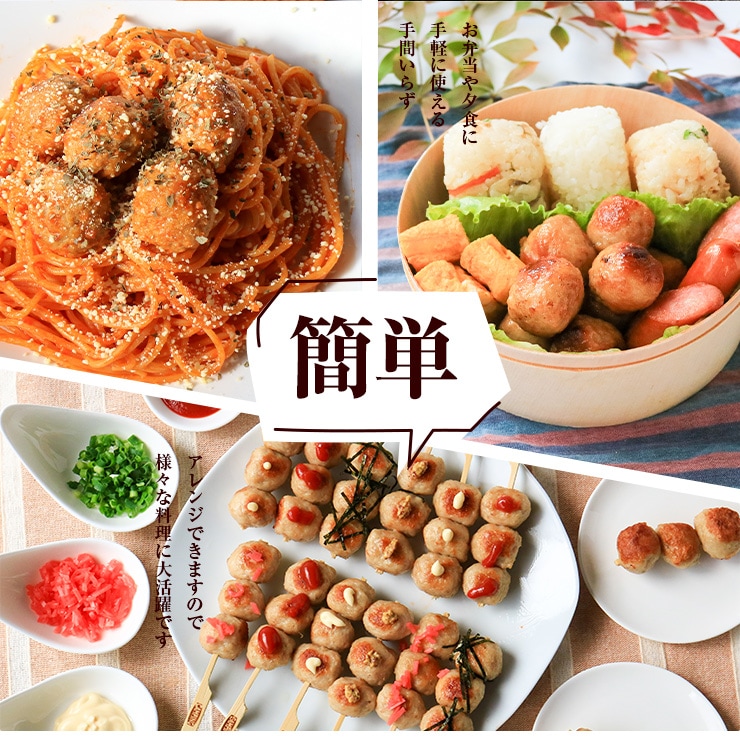 薄い味付けで、水炊き鍋、鍋、鶏鍋、ちゃんこ鍋、お雑煮、おでん、キムチ鍋、寄せ鍋、トマト鍋、カレー鍋、鶏鍋、みそ鍋、とんこつ鍋等の鍋系から、みそ汁、豚汁、コンソメスープなどのスープ系にご利用いただくと、鶏肉や野菜の出汁が出てお鍋が美味しくなります。またお味噌汁の具材、焼いてお弁当のおかず、餃子や中華春巻きの具材、ほぐして炒めて鶏そぼろ、ヤキトリ、やきとり、鶏だんごのお野菜ポトフ、鶏だんごのクリーム煮、鶏だんごの野菜煮込み、甘酢あんかけ、照り焼き、味噌汁、トマト煮、鶏団子スープ、鍋鶏団子、ふわふわ鶏団子、うま煮、大根 煮物、そば、ラーメン、にゅうめん、うどん、カレー、揚げつくね、お弁当 おかず おつまみ、おいしい手作りごはん、スープジャー弁当、甘酢あんをかけてお弁当、肉団子甘酢あんかけ、あんかけ肉団子、肉団子黒酢あん、肉団子鶏肉、肉団子鍋、肉団子甘酢、肉団子白菜スープ(白菜と肉団子のスープ)、春雨肉団子スープ、肉団子うどん、鶏肉団子、肉団子春雨スープ、春雨スープ肉団子、春雨と肉団子のスープ、鳥肉団子スープ、中華肉団子スープ、肉団子の酢豚、肉団子酢豚、肉団子キャベツ、鍋肉団子、味噌汁にいれて肉団子味噌汁、肉団子トマト煮、肉団子トマト煮込み、肉団子ケチャップ、肉団子 のトマト煮込み、ポックル、ポトフ、中華肉団子、肉団子照り焼き、肉団子煮物、作り置き肉団子、鳥肉団子鍋、白菜肉団子鍋、肉団子おかず、肉団子パスタ、鳥肉団子、離乳食と使い方いろいろな万能鶏だんごです。柔らかい食感なので容易にかめるため、介護食にも。