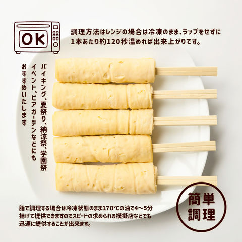 ・串状になっているので、片手で持って手軽にお召し上がりいただけます。バーベキューではもちろんのこと文化祭、学園祭、イベントなどの催し物での模擬店でも大人気です。ボリューム感はバッチリなワンハンド商品です。
