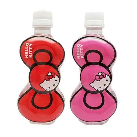 「キャラクター ボトルウォーター リボンキティ」は、ハローキティのリボン型ボトルウォーターです。キティちゃんのトレードマークであるリボンをモチーフにしたペットボトルです。中身は軟水で飲みやすい、ミネラルウォーターが入っています。鮮やかな赤とピンクが印象的なデザインで、ボトルのサイドにも、小さなリボンとキティちゃんがプリントされています。持っているだけで気分があがるデザインです。キティちゃんが好きな方、キティちゃんグッズを集めている方へのちょっとしたプレゼントやお土産などとしてもご利用ください。