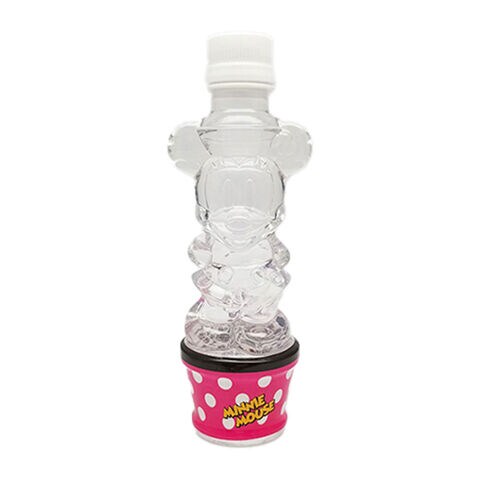 「キャラクター ボトルウォーター ミニーマウス」は、ミッキーマウスのガールフレンド、ミニーマウスの形をしたボトルウォーターです。ピンクの水玉ドレスをイメージした、かわいいデザインのラベルが特徴です。ミッキーマウスのボトルと揃えるのもおすすめ。飲んだ後も飾りたくなるデザインです。ボトルは、持ちやすい細めのサイズになっております。