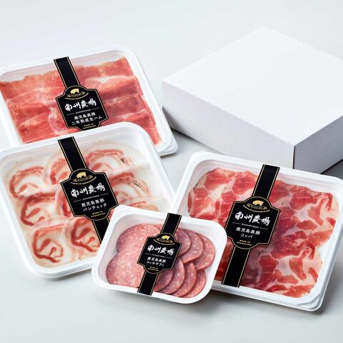 自然豊かな鹿児島県大隅(おおすみ)半島にある南州農場で大切に育てられた「かごしま黒豚」を使用した「南州農場 かごしま黒豚 熟成生ハム 食べ比べセット」です。濃厚な旨み、食感、香り、余韻を楽しめます。かごしま黒豚は、鹿児島県黒豚生産者協議会が認定するブランド豚です。バークシャー種100%の純粋黒豚のみが対象で、飼育方法や飼料に厳しい基準(サツマイモを一定期間以上与えることが求められるなど)があります。肉質はきめが細かく、甘みのある脂肪が特徴です。