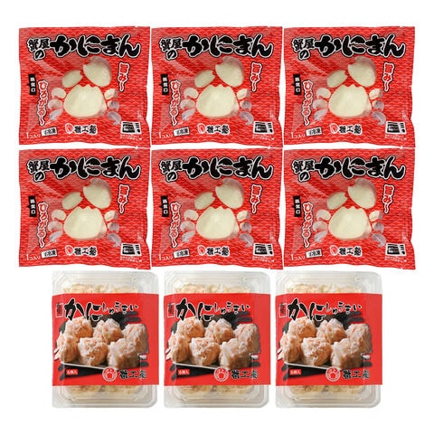 【数量・内容】蟹屋のかにまん120g×6、かにしゅうまい240g(6粒入)×3