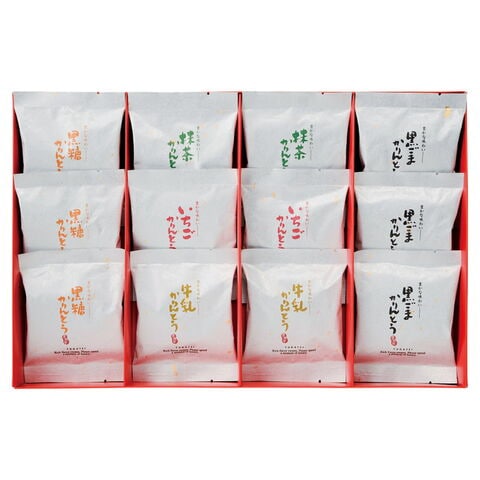 【数量・内容】黒糖かりん糖(10g)・黒胡麻かりん糖(10g)×各3、牛乳かりん糖(10g)・抹茶かりん糖(10g)・いちごかりん糖(10g)×各2