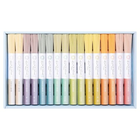 「みわのにじ RMW-30」 独特のコシと、のど越しが自慢の手延べ素麺を虹に見立てた彩り豊かな七色に仕上げました。