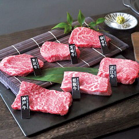 「6大ブランド和牛食べ比べミニステーキ 7000951」 日本を代表するブランド和牛の食べ比べセット。それぞれの味わいをミニステーキ用でお届けします。
