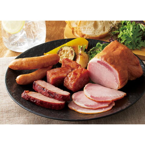 【数量・内容】特撰ロースハム(340g)・あらびきミートローフ(100g)・焼豚(150g)・特撰あらびきウインナー(57g)×各1