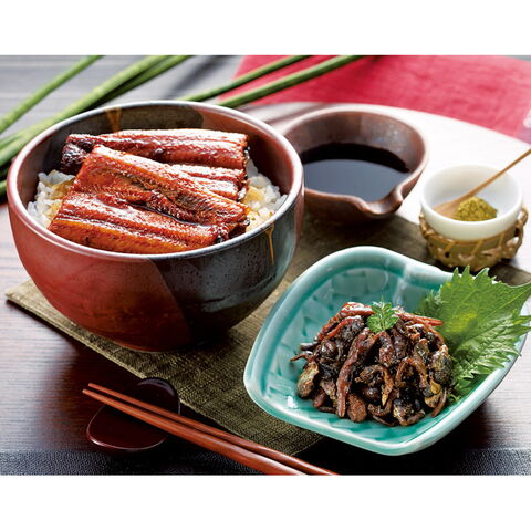 【数量・内容】蒲焼(55g)・鰻肝煮(50g)×各2、特製蒲焼のたれ(50ml)×1、山椒×4