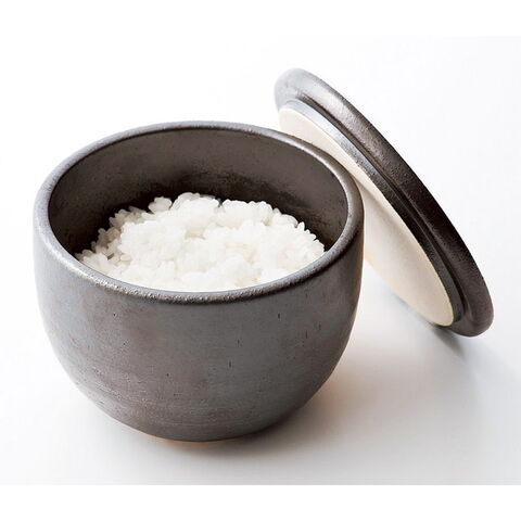 「信楽焼 Hangout ライスコンテナ ブラック Hg-7b」 ごはんを温かいまま入れ、そのまま冷凍庫(冷蔵庫)へ。食べる前に電子レンジでチンするだけ。ふっくらご飯がよみがえります。信楽焼の吸水性のある性質を利用した逸品。