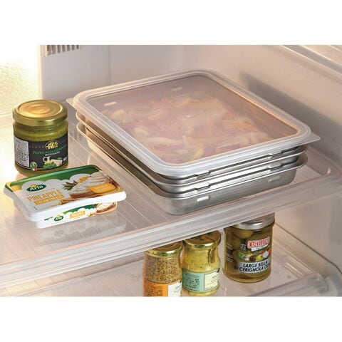 「燕三 重ねて使えるステンレス角バット3点セット EM-048」 バットが2枚あるので溶き卵とパン粉を1つずつ入れられて揚げ物をする際に便利です。重ねてしまうことができるので収納に便利です。シール蓋も付いているので冷蔵庫に保存するときに使えます。