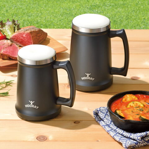 「フーレイ ジョッキタンブラー700ml ブラック ME-7505」 安定感のある下広がりの本体、持ち上げやすい大型ハンドルで、ひんやり美味しいビールや温かい飲み物を堪能できるジョッキタンブラーです。
