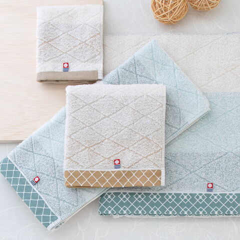 「和布小紋[modern] フェイスタオル2P(国産木箱入) KWFK-020K」 日本一のタオル産地・今治で丁寧に織り上げられた高品質タオルを、格調高い木箱に入れて贈ります。日本伝統の小紋柄をあしらったタオルは、和の美しさをシンプルに伝えます。どんな場にも馴染むので、使いやすいタオルです。
