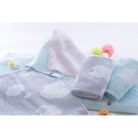 「天使のふわもこ ふわふわひつじのかくれんぼ フェイス1P・タオルハンカチ1P FH-515」 まるで雲のような、ふんわりとした柔らかさが特徴のタオルです。糸の撚りをゆるく「甘撚り」した、通常の糸より柔らかい糸で織り上げています。かわいらしいひつじの柄をあしらい、やさしい色合いに仕上げました。