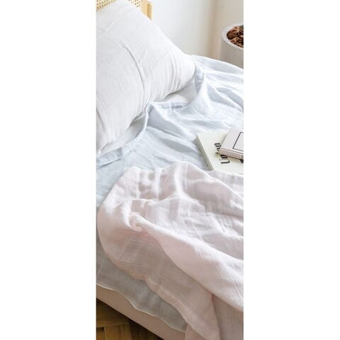 「JOGAN GAUZE コットンガーゼケット ブルー JG3-KT BL」 泉州伝統的な多重織りガーゼです。三層のガーゼ組織なので通気性が良く、コットン100%で汗もしっかり吸収。柔らかいガーゼのやさしい風合いが快眠を誘います。