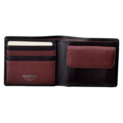 「ゴールドファイル 札入 ブラック GPC0215」 手触りの良いソフトな牛革を使用し、内作りにワインカラーの革を用いて、おしゃれな感覚に仕上げました。・札入×2・カード入×8・ポケット×3・ホック式小銭入×1(中×2)