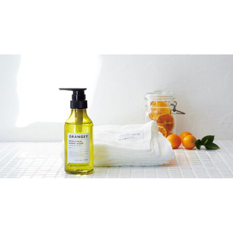 「オランジー 薬用ハンドソープとオーガニックタオルセット 19042」 オレンジ&ハーブのこだわりフレーバーがふわっと香るハンドソープとオーガニックコットンタオルのおしゃれでやさしいセットです。