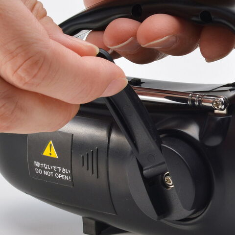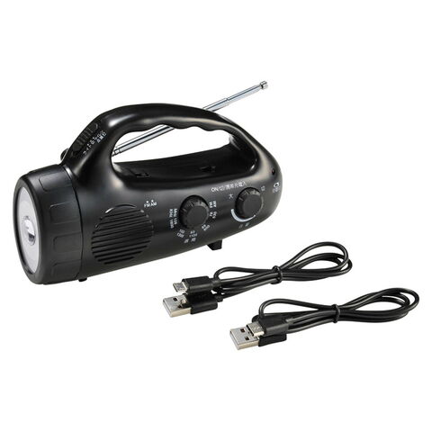 「スマホ対応ダイナモハンディラジオライト」 付属のUSB蓄電ケーブルを使用し、本体蓄電可能です。●手回し充電機能付●ライト●AM/FMラジオ●サイレン●スマホ充電